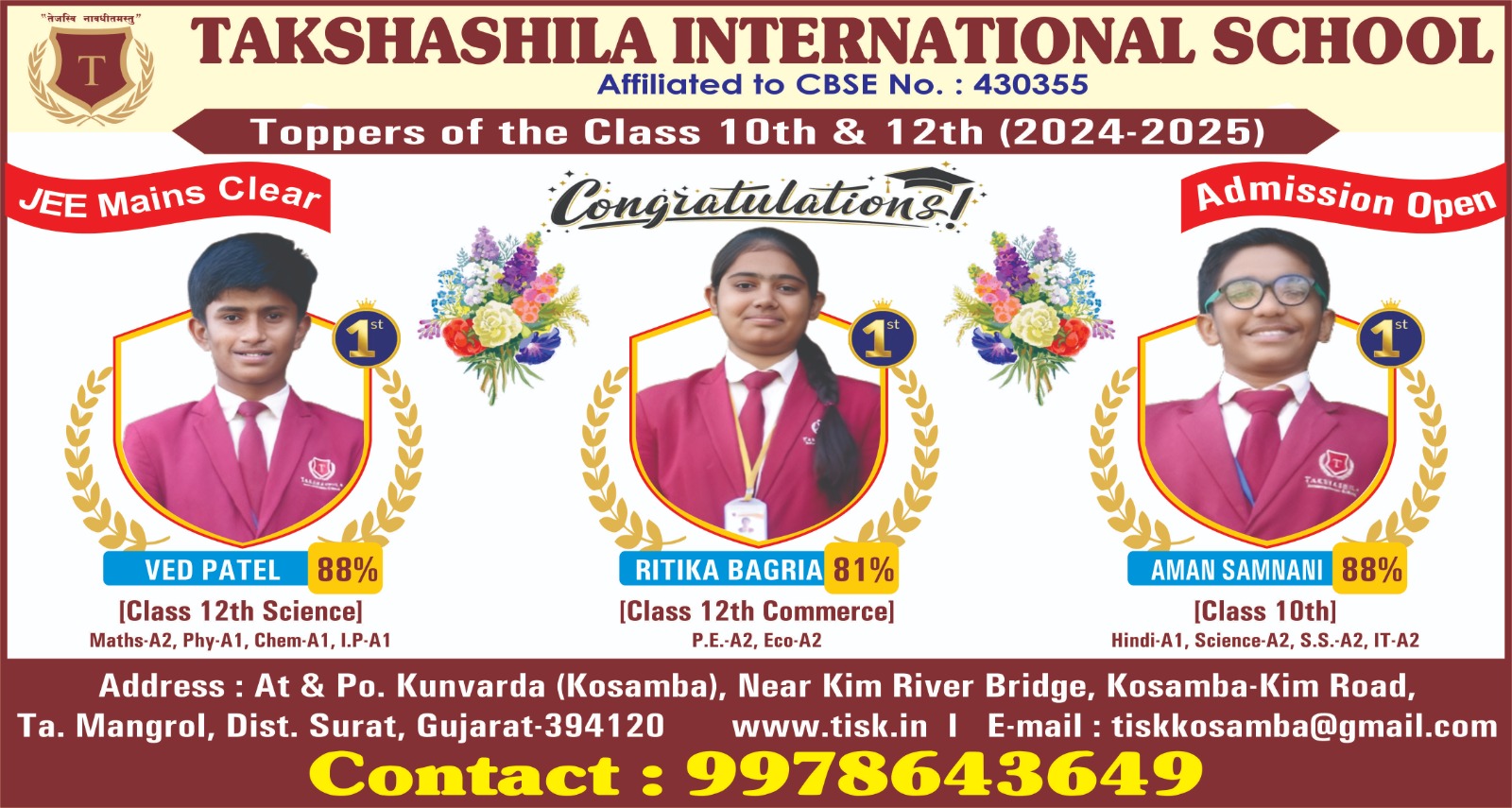 Takshashila has been envisioned with an aim to provide a holistic and progressive educational experience. Our main objective is to create an atmosphere ideal for teaching-learning and extract the best in our children. We strive to help every child succeed and achieve his/her best, and shape his/her academic, personal and social progress. Our children should study in a secure and highly supportive and non – threatening environment.
